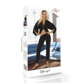 El conjunto Margot es un conjunto sexy de dos piezas confeccionado en algodón de tacto suave y elegante encaje. El top corto, de corte fantasía y mangas anchas, deja ver coquetamente la cintura, añadiendo encanto femenino al conjunto. Los pantalones largos y cómodos, rematados con un dobladillo de encaje y atados en la parte superior con un cordón, aportan comodidad y elegancia. La elección perfecta para una velada llena de relax y elegancia.