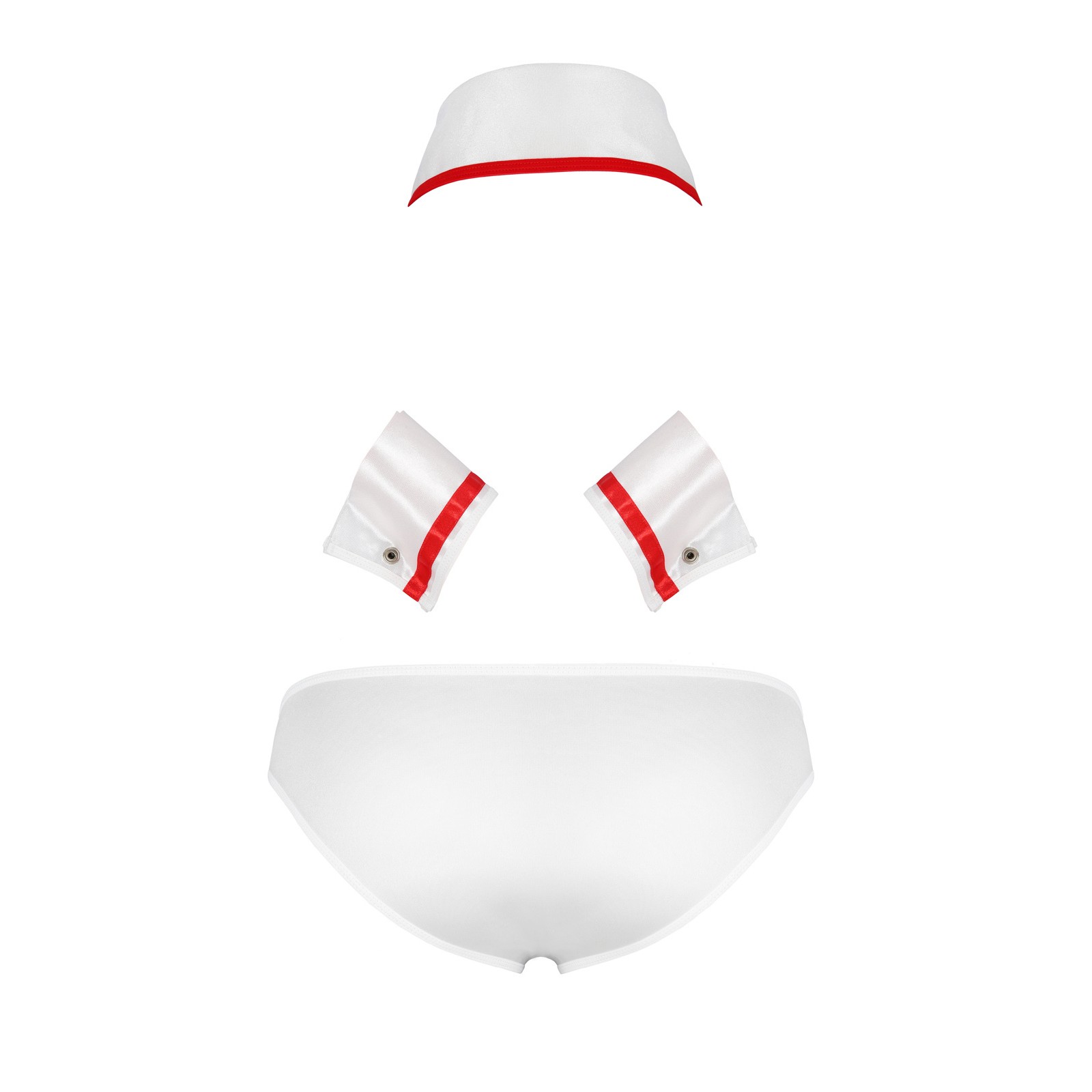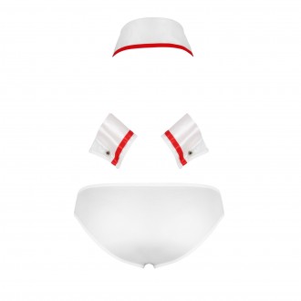 El conjunto incluye braguitas blancas con una cruz roja, un elegante lazo y cierres a presión. Decide tú misma lo intensas que serán estas pruebas.