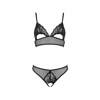El conjunto Christa de Passion es una lencería sensual en color negro, con atrevidos recortes en el pecho y entre las piernas, adornados con un delicado encaje que aporta un toque de sofisticación.