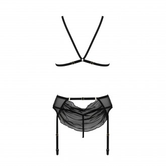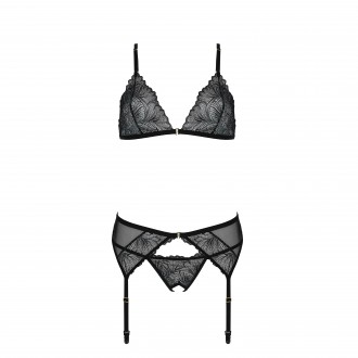 El conjunto Deliena de Passion es una pieza de lencería compuesta por tres piezas: un sujetador, un tanga y un liguero.