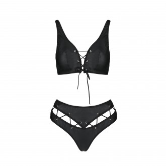 Conjunto de dos piezas con escote profundo y un sutil corsé que realza el busto, proporcionando un ajuste perfecto y una silueta elegante. Ideal para momentos de sofisticación y comodidad.