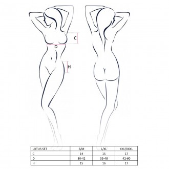 Conjunto Lotus de PASSION en satén elástico con delicados bordados, copas con aros y tirantes ajustables. Incluye tanga y liguero con cierres ajustables, que aportan comodidad y sensualidad.